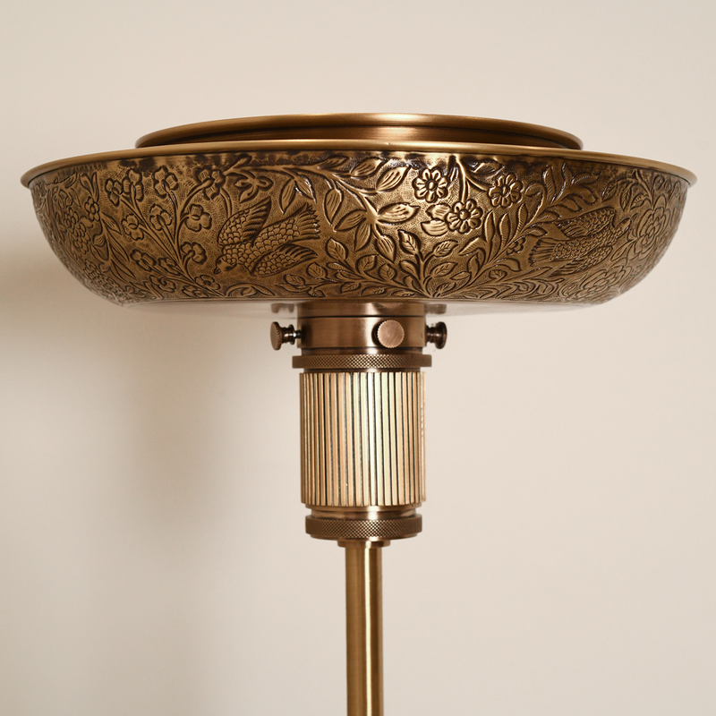 Infused with Rose & Oudh, the candle releases a warm, enveloping scent that balances floral delicacy with resinous depth—perfect for quiet moments, bedside rituals, or personal spaces. As the flame reflects off the brass surface, it casts a soft, golden glow that enhances the sense of calm.